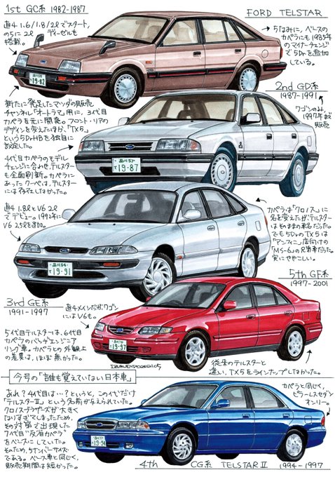 私的イラスト傑作選(267) カー・マガジン511号(2021/6/5発売)の連載「ボクらのヤングタイマー列伝」では、「フォード・テルスター」がテーマでした(再紹介で申し訳ありません)。 バックナンバーはこちらです fujisan.co.jp/product/128168… #コピックマーカー #多分世界で唯一テルスターを並べた絵