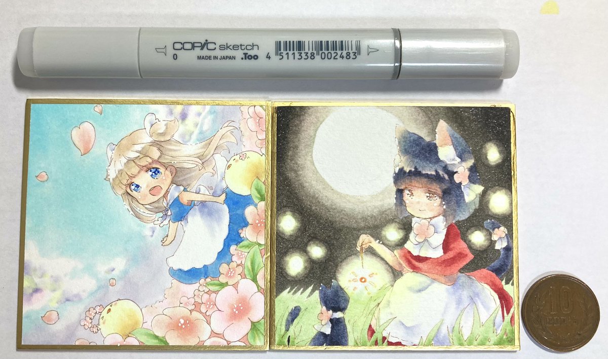 トゥールズさん(@Tools_umeda)のイラコンにて、拙作が金賞を受賞させて頂きました!!✨✨ 投票・コメント残して下さった方々、本当にありがとうございます😭 11/17までアンコール展示頂いてるので梅田にお立ち寄りの際は是非🥰 ちょっとしたコメントも載せてもらってるよ🥳 #コピック豆色紙 twitter.com/tools_umeda/st…