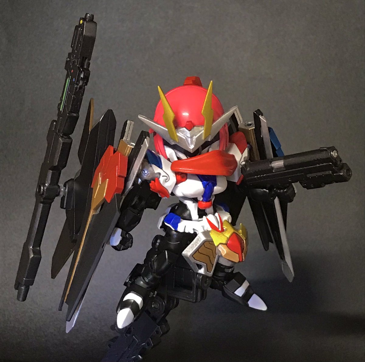 『有り合わせでも構わんのだろう?』 【マスクコマンダー ハルファス】 幾つものSD戦士の力を奪い、仮面に変えて己の力として戦う。ある大会を制した伝説の戦士。 という設定です!カッコよくできました! ねえ、貴方もそう思うでしょう? #7人のマスクコマンダー #コマンドフェイズ参戦 #ガンプラ