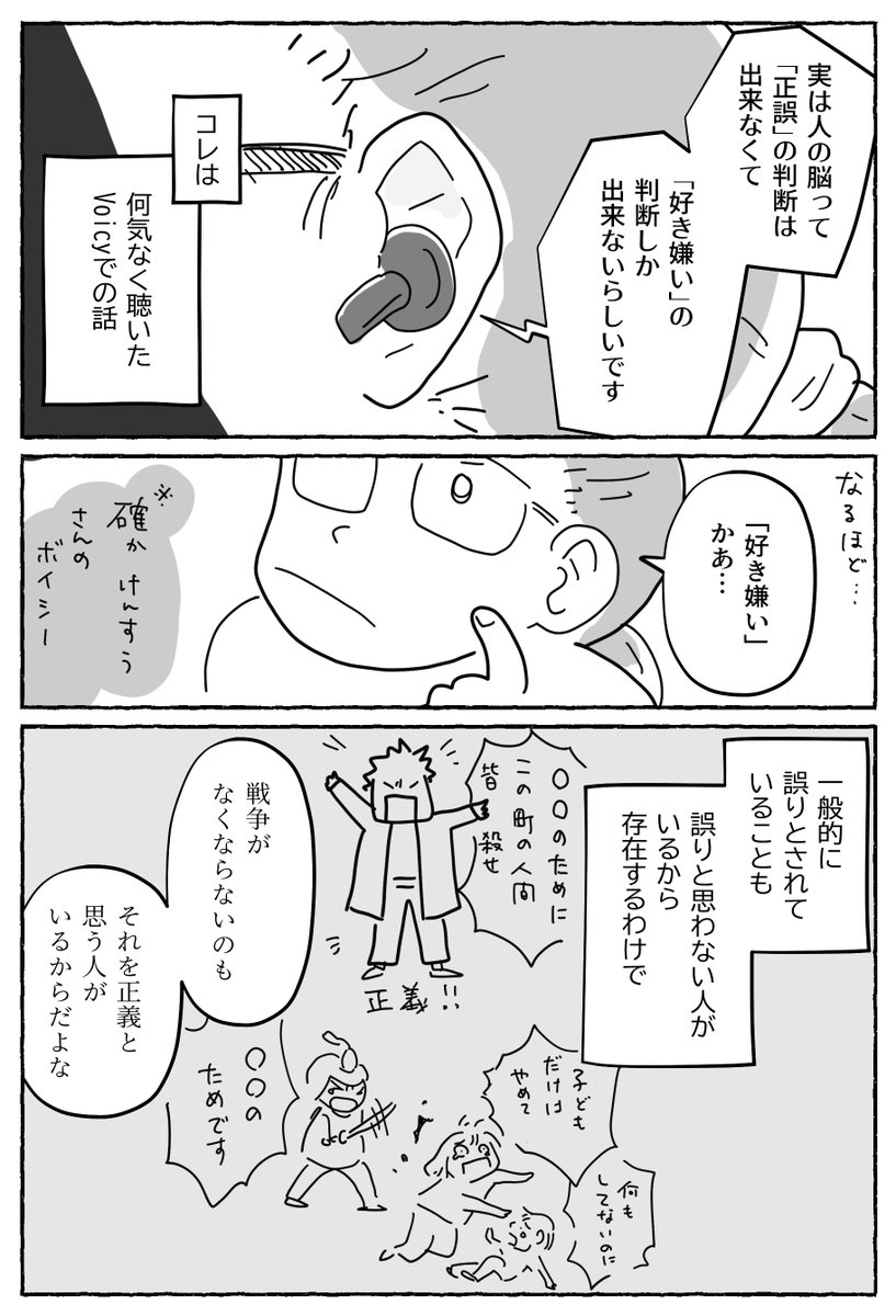 「正しさ」って結構曖昧なものだから、お互いの正義を押し付けずに認め合うほうがいいのかもしれないと思った話。 (1/2) 今朝、朝散歩しててこんなことをグルグル思ったのでした。 #漫画が読めるハッシュタグ #コミックエッセイ