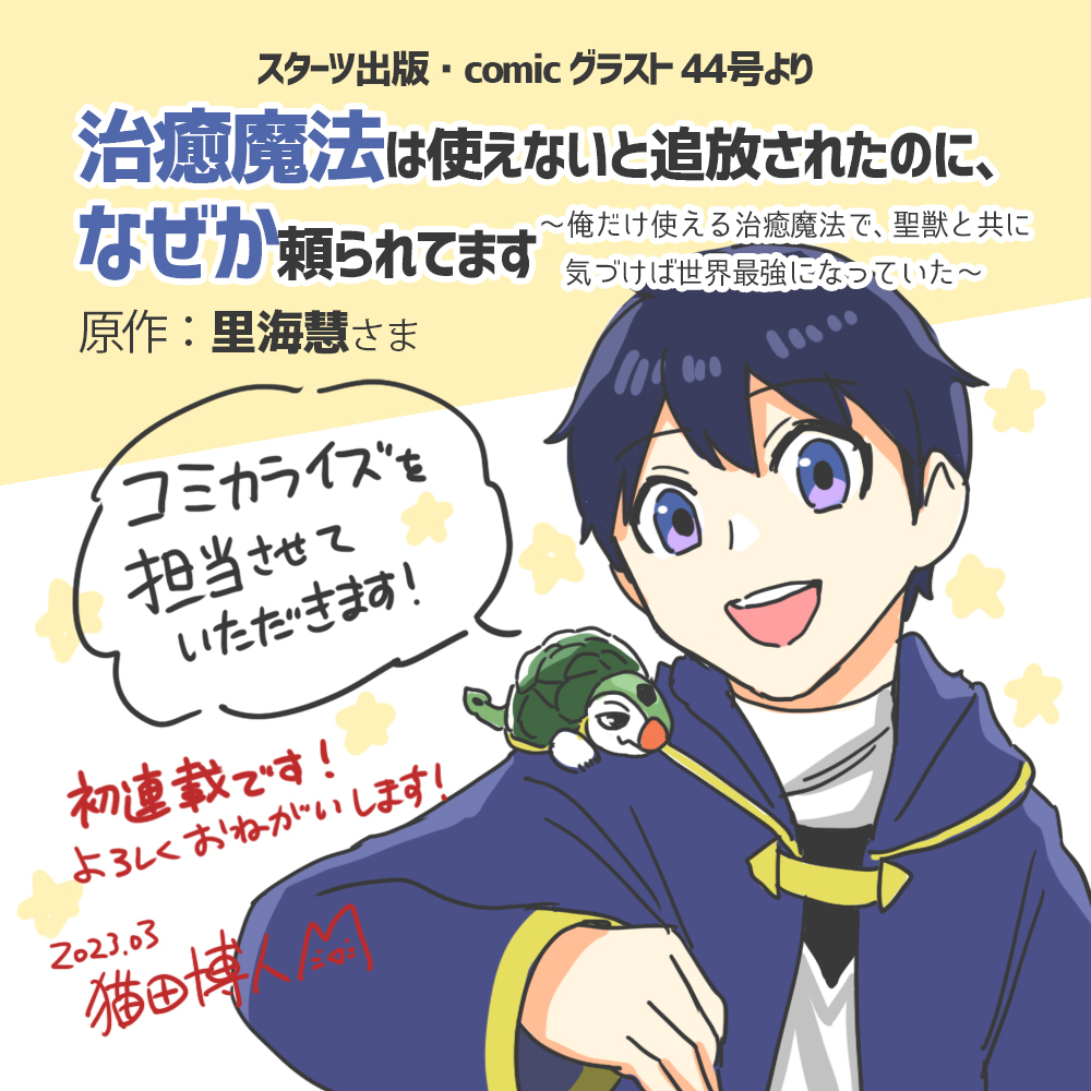 【🌟お知らせ】 コミカライズ連載を担当させていただきます! 『治癒魔法は使えないと追放されたのに、なぜか頼られてます~俺だけ使える治癒魔法で、聖獣と共に気づけば世界最強になっていた~』(原作:里海 慧さま) ◆ノベマ!で前半が読めます! novema.jp/comic/serial/n… #コミックグラスト #PR