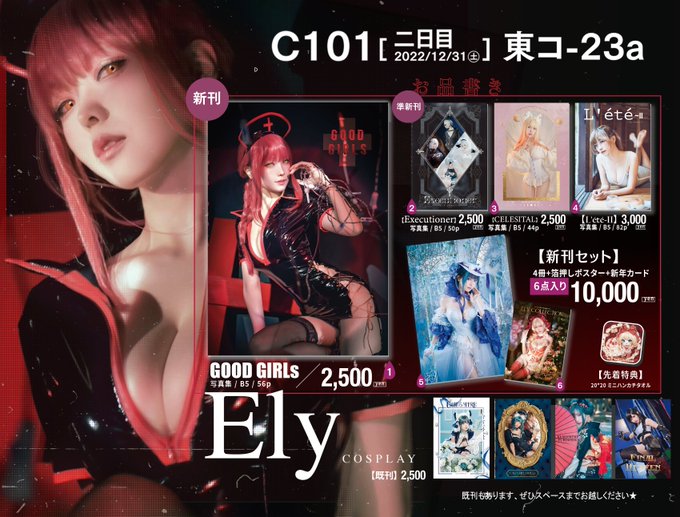 【#C101】新刊の見本~⓵ 新刊 [GOOD GIRLs] はチェンソーマンの4つのキャラクター、衣装6着を収録されています✨ とても好きな作品なので、撮る時も写真集作る時も楽しかった~💕 映画のシーンみたいなページも作ってみました🎞️ #コミックマーケット101