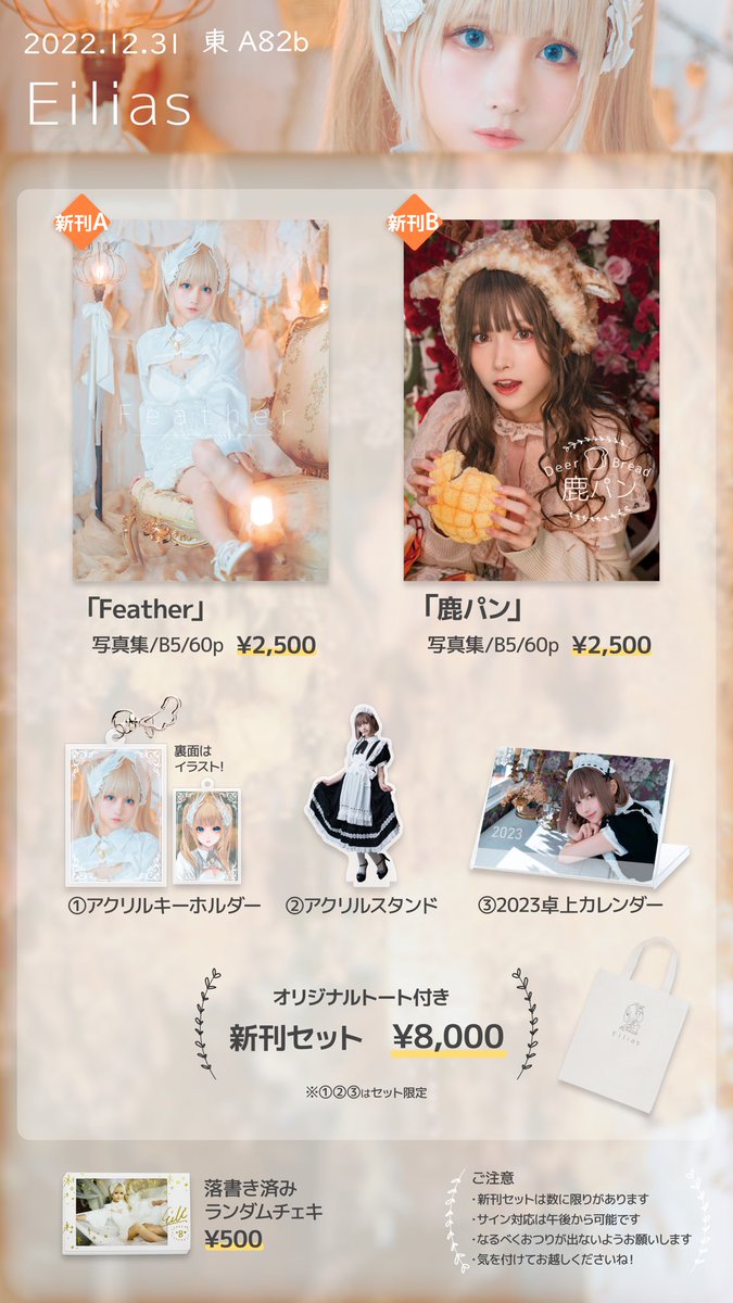 🐥C101お品書き🐥 翼をテーマにした神秘的な写真集と、 ひたすらパンを食べている表情豊かな 写真集を作りました! 今回は新刊セットもございます😉 通販は年明けに開始予定! 2012/12/31(土) 東A 82b Eilias にてお待ちしております💛 #c101 #コミックマーケット101