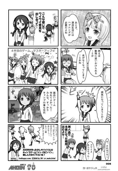 女の子達がブラウザゲームをつくるコミック 『AHOIN~あほいん~』 つくったブラウザゲームと一緒に公開中 indieggc.com ~次回予告~ #4『素晴らしいキャンプ』 4月16日(日)公開予定 エヌ氏「ユートピア~」 エス子「違うか~っ!」 #comipo #コミック #ブラウザゲーム