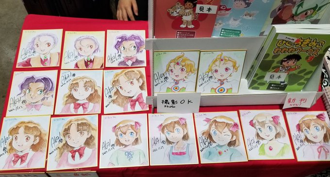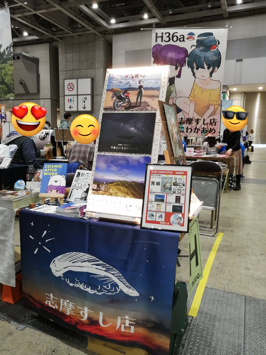 設営完了しましたー!色紙たくさん描きました笑この間のサイン会の時のギターちゃんのサークルポスターが目印です! ゆるくお待ちしてます〜!!( ◜▿◝ )🎸.。o○ #コミティア142 #COMITIA142