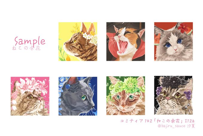 秋🍎新刊サンプルです☺️ 「ねこの余花」500円 発色バッチリ😍の様々な猫種🐱をお手に取っていただきやすい価格で頒布します #コミティア142 #コミティアお品書き #コミティア #コミティア142お品書き #絵描きさんと繋がりたい #イラスト