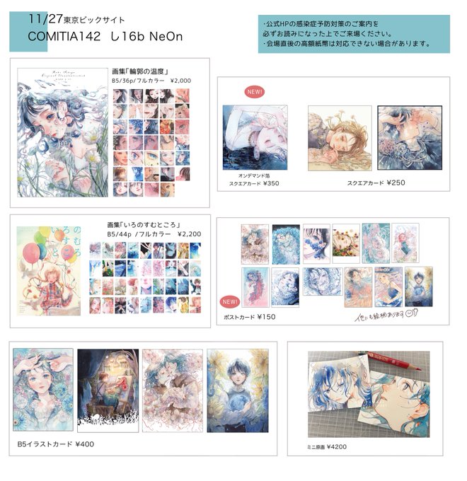 ❕コミティア142お品書き❕ し16b【NeOn】 にて、お待ちしております! 新しいポストカードとイラストカード、ミニ原画があります🙇♀️ 個展のDMと新しい名刺もありますのでぜひお気軽にお立ち寄りください🫶 #comitia142 #コミティア142お品書き #コミティア142