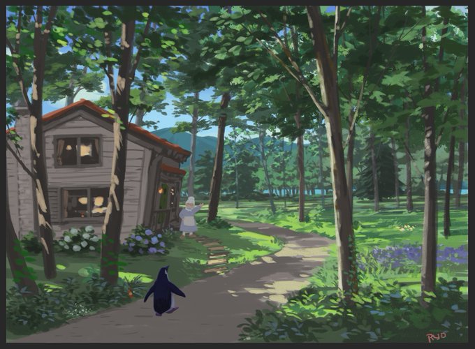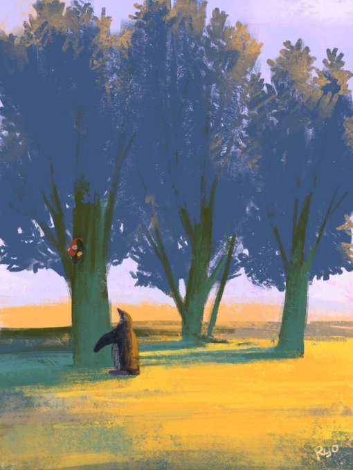 今日はここまで 高原行きたい・・・🏕 夢を託して、お絵描き🧚♀️ #コモリーペンギン #コモリーペンギンと友だち #ペンギン #夏休み #森の散歩 #避暑 #digitalpainting #paintingoftheday #tourboxelite #penguin #イラスト #夏休みはフォロワーさんが増える