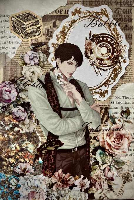 男子と花をもりもりするのがすごくやりたくて男子のステッカーが来るのを首を長くして待っていたヤーツ。 テーマはギャンブラー💸 #イラスト #コラージュ好きな人と繋がりたい #コラージュ好きさんと繋がりたい #コラージュノート #コラージュ初心者