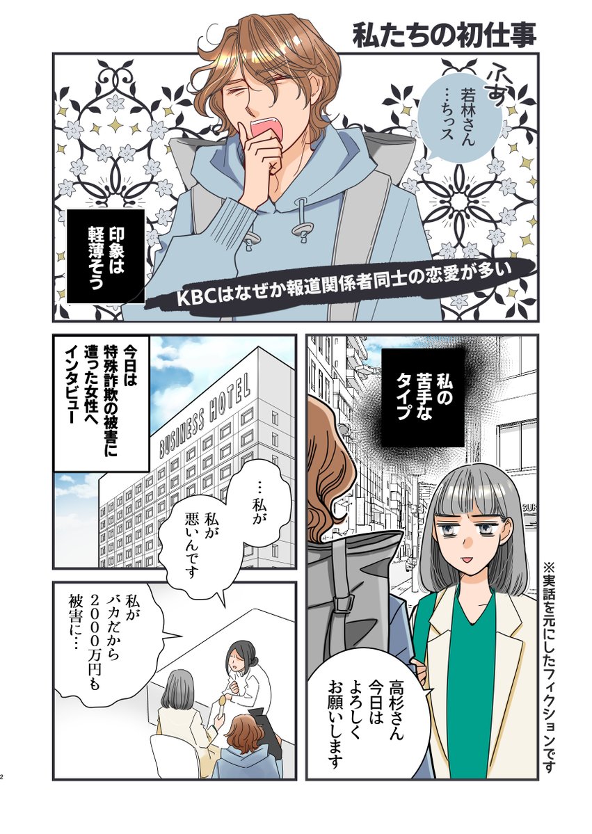 / KBC報道恋愛白書🕊 \ 第1話「私たちの初仕事」 KBCはなぜか報道関係者同士の恋愛が多い!? 今回は実話を元にした放送局の『恋愛』をマンガにしてみました💕 (物語はフィクションです) 好評であれば続編も!?👀 制作:新月ゆき、コルク #コルク #漫画 #漫画が読めるハッシュタグ