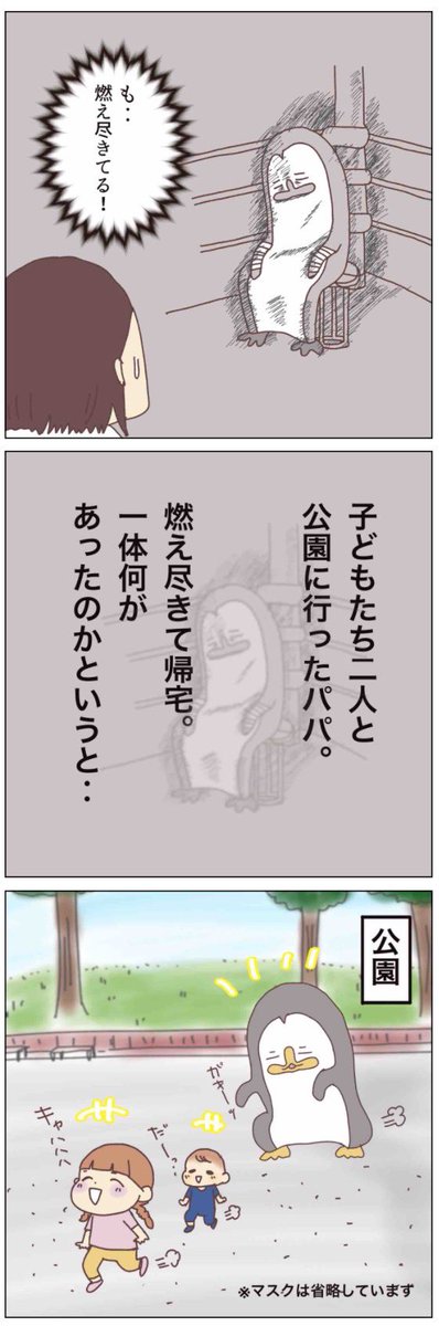 1歳3歳 ワンオペパパの週末奮闘記(1/4) 子供たちを連れて公園に行ってくれたパパ。しかし、クタクタに燃え尽きつて帰宅。 何があったのかと言うと… ※このシリーズ、パパの至らないところが多々出てくると思いますが優しい目で見守って下さい😅 #育児漫画 #ワンオペパパ #コルラボマンガ専科