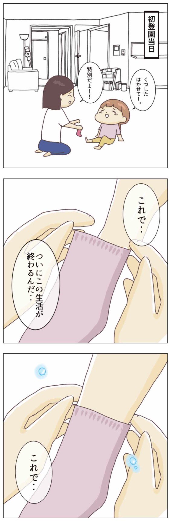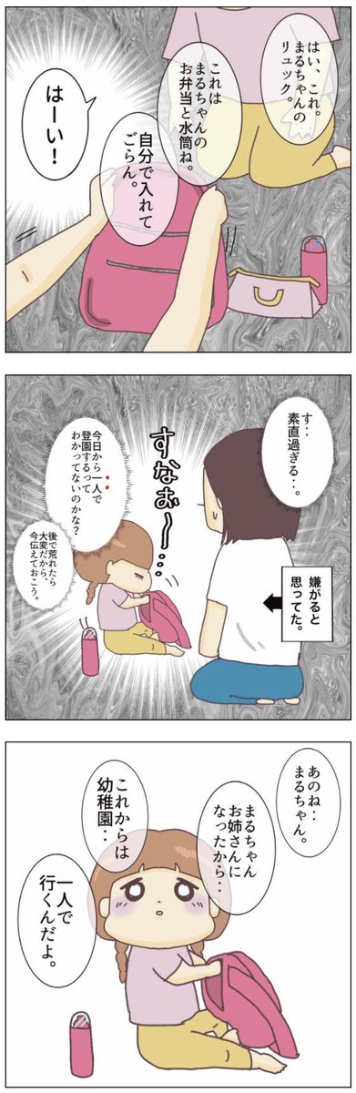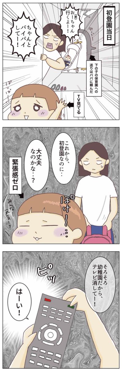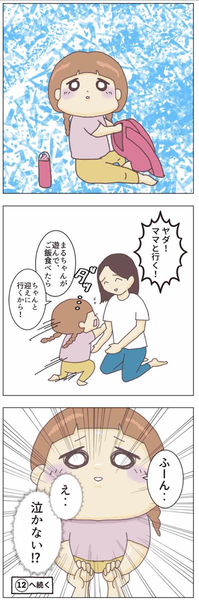 幼稚園 一人で行けるのか…? 4年近い自宅保育を終え、 ついに、幼稚園が始まる。 入学まで15日間を リアルタイムで記録したマンガ。 この時期、泣いた泣いた😢 #子育てあるある #育児漫画 #コルラボマンガ専科