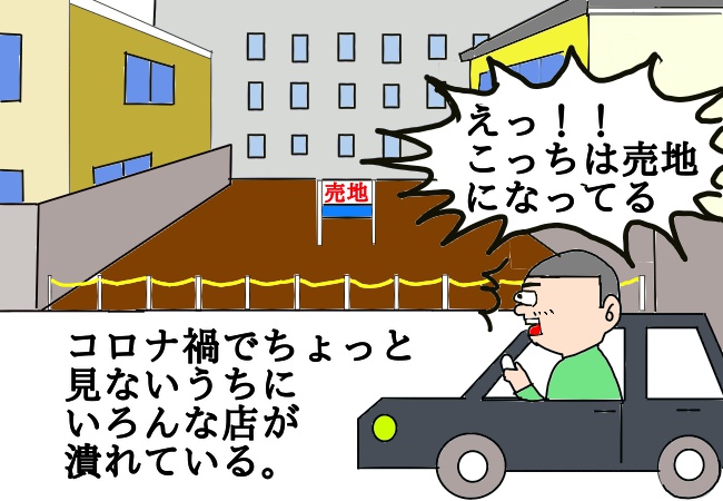 4コマ漫画「えっ・・しばらく見ないうちに!!」 車に乗っていてびっくりしました!! #4コマ漫画 #漫画が読めるハッシュタグ #イラスト好きさんと繋がりたい #イラスト練習中 #コロナに負けるな #漫画好きと繋がりたい #コロナは茶番 #閉店 #イラスト #不況