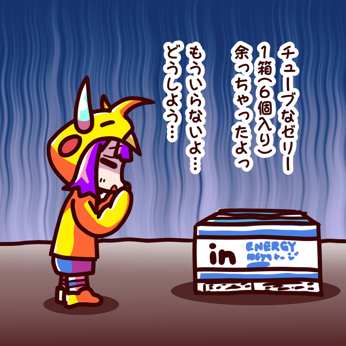 コロナワクチン3回目の副反応中のお食事用にチューブなゼリー(inゼリー的なもの)を3箱買ったんですが、治ったので1箱(6個入り)残っちゃいましたっ😅 毎食だったので、もうたべたくない…😱 #コロナワクチン3回目 #これも副反応だったりして #イラスト #絵描きさんと繋がりたい #落書き