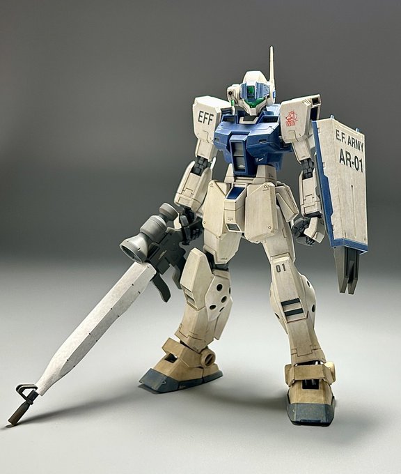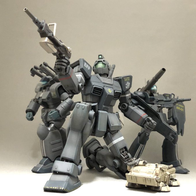 ジムと言えば大好きなガンダム外伝「コロニーの落ちた地で…」のジムホワイトディンゴ隊仕様が大好きなんです😭 1/100の過去作ですが、ガウ撃墜任務で装備した試作ビームライフル等をスクラッチした思い出深い作品です😆 4枚目の画像は1/144WD隊機です♪ #ジムの日 #コロニーの落ちた地で