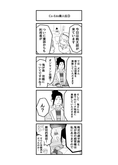 まさかCo-Edoにあのひとが…🍑 お腰につけたきびだんごも別のものになってそう😅 Co-Edoは今日も平和です✨ #漫画が読めるハッシュタグ 👩🏼広報担当ai #茅場町で逢いましょう #コワーキングスペース