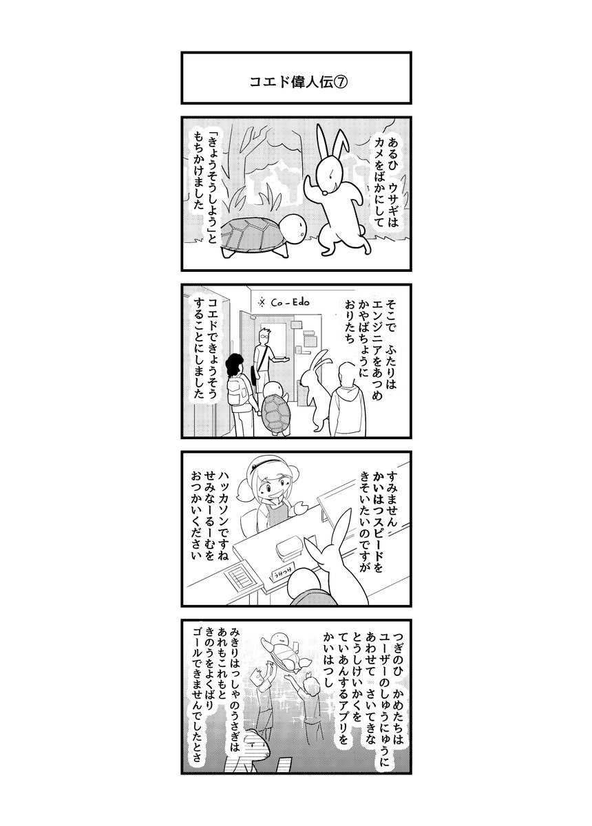 Co-Edoイソップものがたり📖 うさぎ と かめ が競争してます🐰🐢 Co-Edoは今日も平和です✨ #漫画が読めるハッシュタグ 👩💻広報担当ai #茅場町で逢いましょう #コワーキングスペース