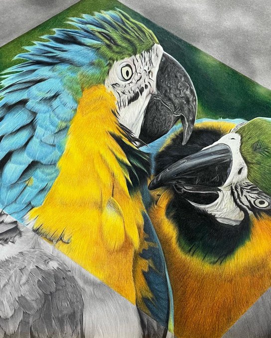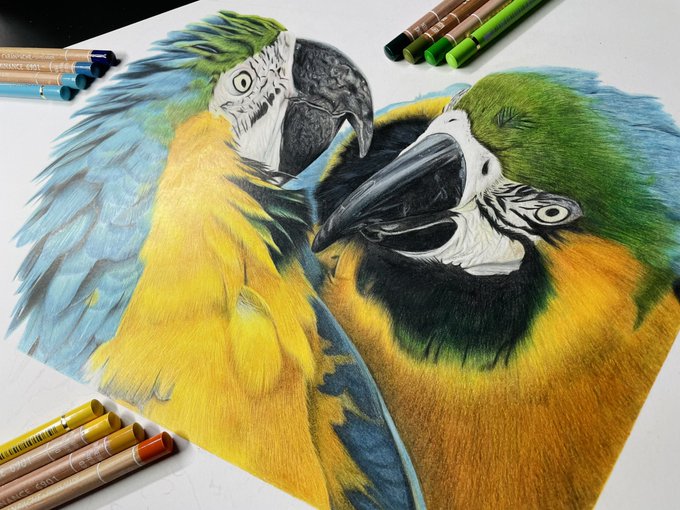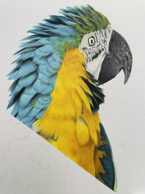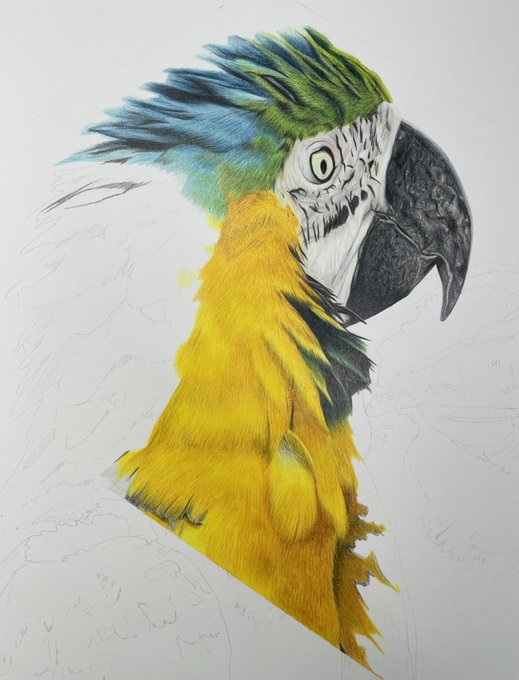 色鉛筆画【 創作途中 】 #色鉛筆 #色鉛筆画 #絵画 #絵 #コンゴウインコ #pencilart #colorpencil 新しい作品に取りかかりました。 A4サイズの作品になります。 ご覧頂き有難うございます。