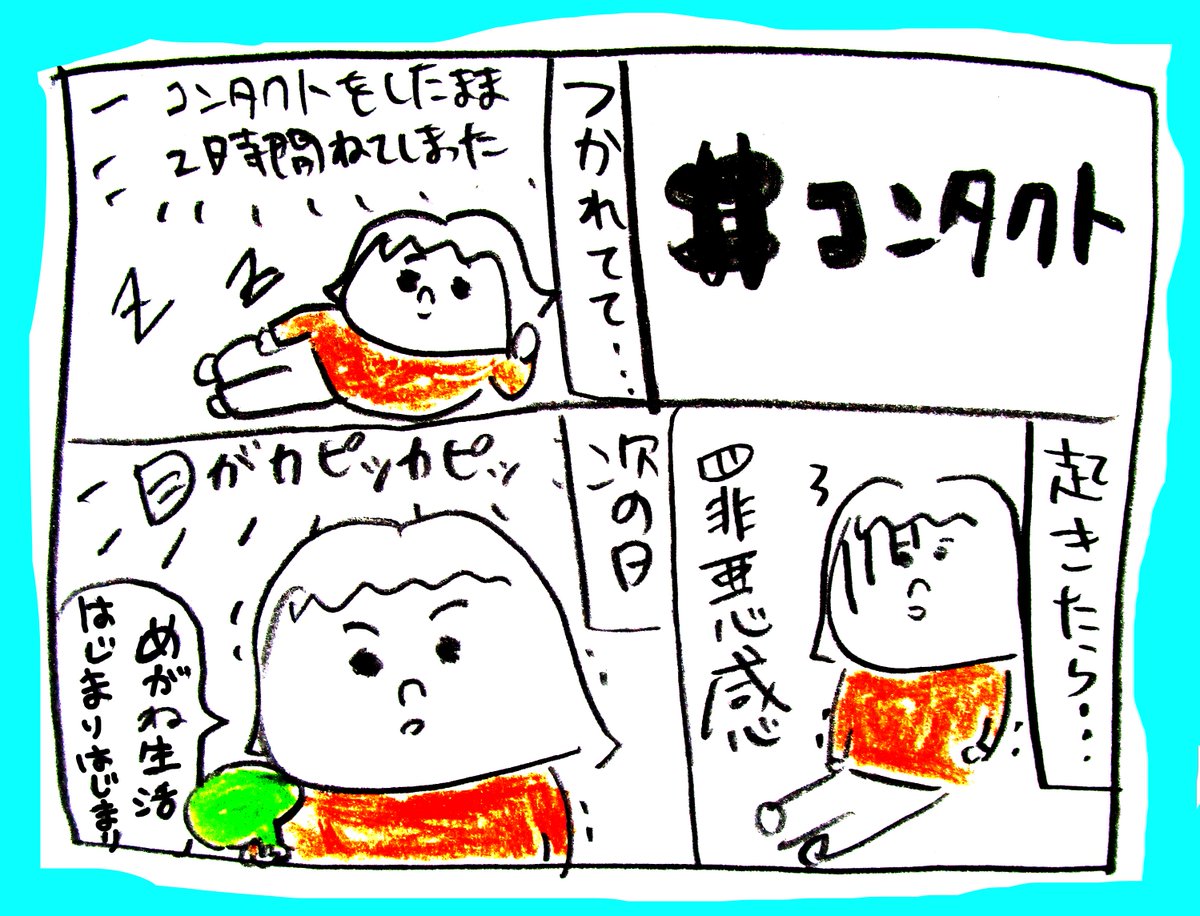 【今日は #コンタクトレンズの日 】 ■メリット ・視界がキレイに見える。眼鏡じゃないから軽い。 ■デメリット ・コンタクト入れる外す(めんどくさい) ・目の乾燥問題 ・コンタクトをつけたまま寝れない #コンタクトレンズ #漫画が読めるハッシュタグ