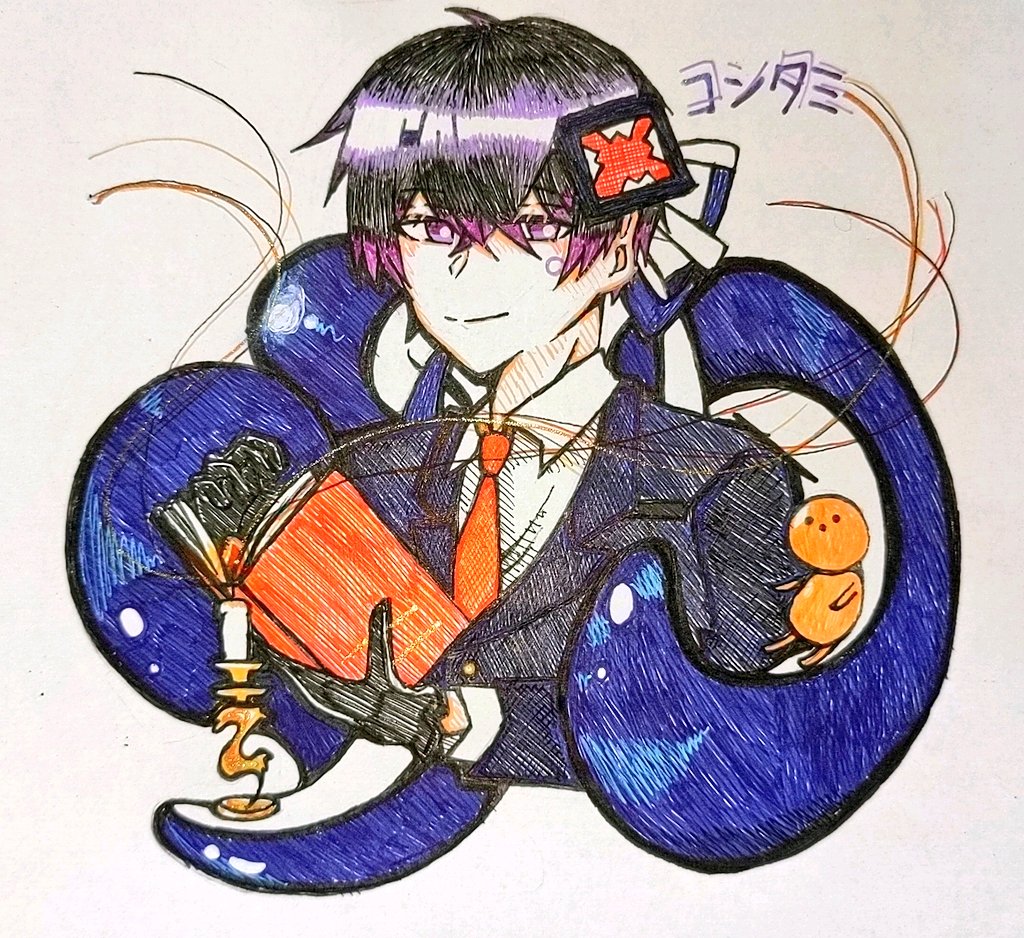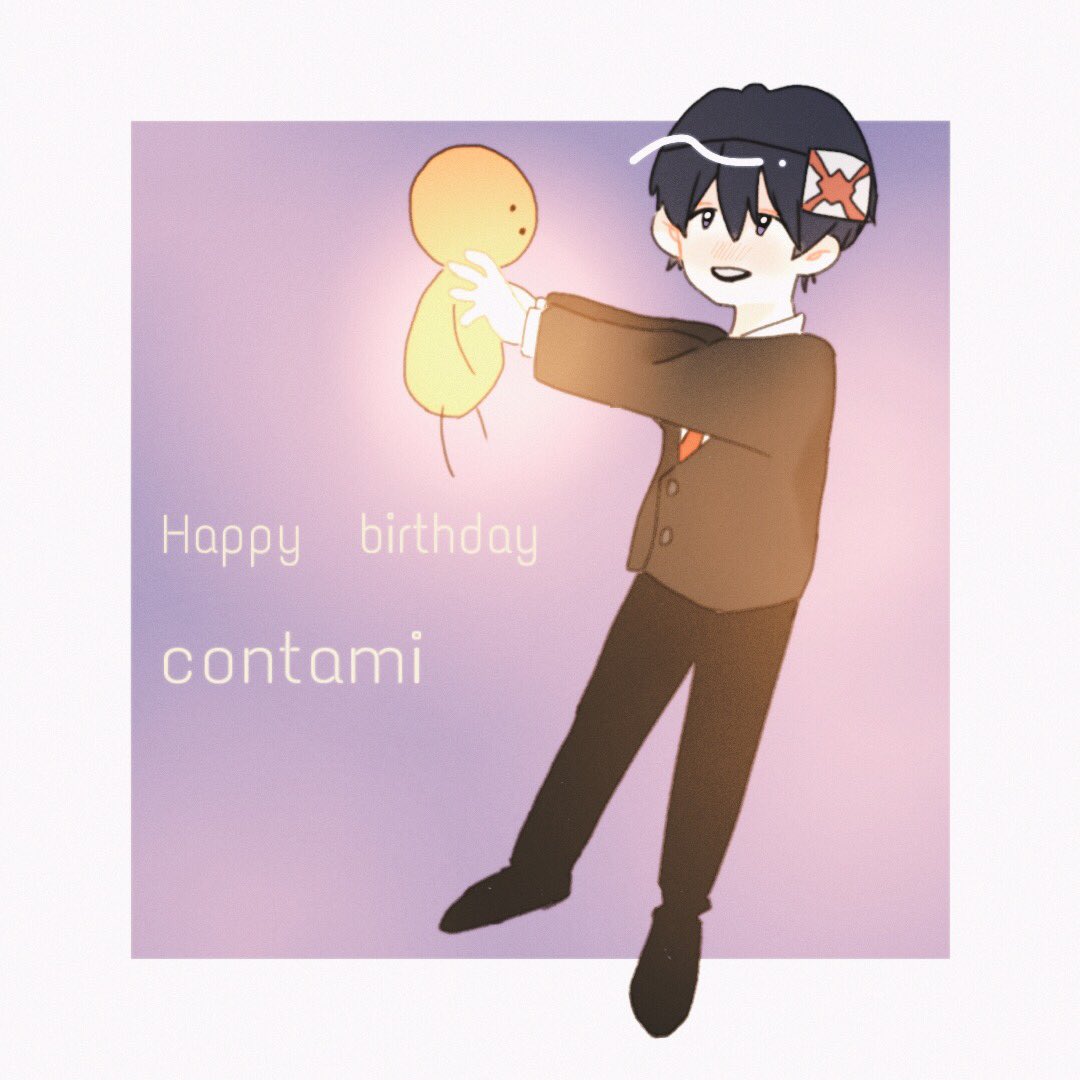 #コンタミの誕生日研究所2021 #コンてすと お誕生日おめでとうございます🎉 雑ですがアナログでイラスト書かせていただきました。 これからも応援しています あ、背景だけデジタルなのは内緒で…… (2枚目は背景塗る前のやつです。おまけということで、一緒に投げときました)
