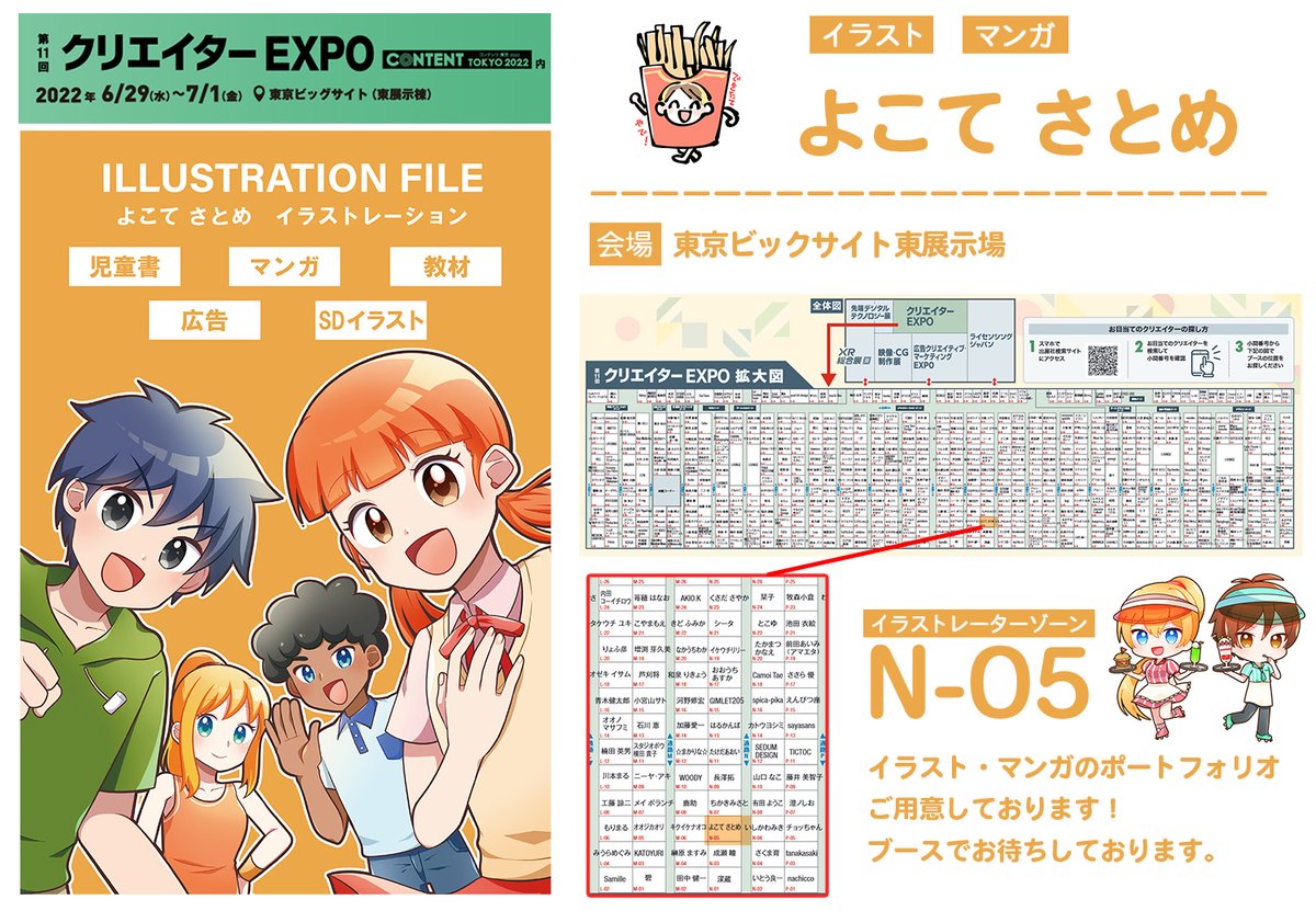 【第11回クリエイターEXPO】に出展します。 会期:6/29(水) ~ 7/1(金) 会場:東京ビッグサイト 東展示棟 【イラストレーション ゾーン/N-05】 画像にある男の子女の子のイラストが目印! お会いできること楽しみにしております! #クリエイターEXPO #コンテンツ東京2022 #クリエポ #イラスト