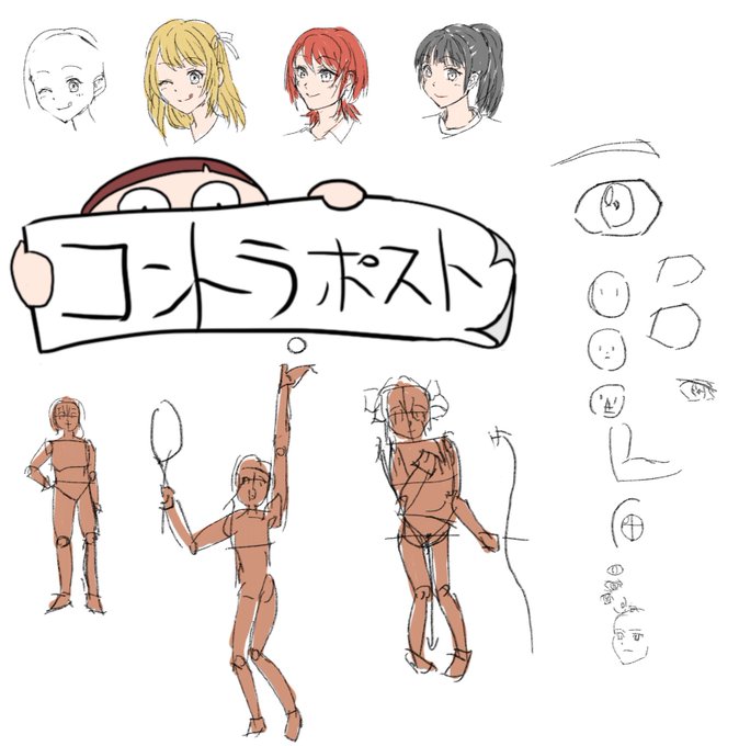 「コントラポスト〜意識するのよいかも〜!」 今の練習プラン〜 ・顔を練習しまくる ・コントラポストを意識しつつ、全身アタリをクロッキングする〜 #イラスト #コントラポスト #神絵師目指してます PS:全身意識を育てつつ、顔から徐々に広げていけば! いづれ全身を描けるようになる、、、はず。