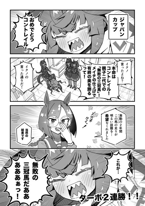 ちょうどこの『今頃毎日王冠の話するライバル』話をざっくり描いてあったとこに、サリオスの引退話がきてビックリでした。 まずは無事に引退できる事を!! #サリオスのでんわくん #サリオス #コントレイル