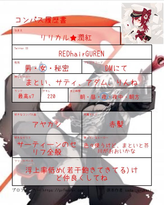 コンパス履歴書初めて作ってみました!! ❤️or🔁で気になった方お迎え行きます! 線画は自分でやって色塗りをのせちゃん @1chi___02 にしてもらいました!!! #コンパス履歴書 #コンパス民と繋がりたい #コンパスお絵描き勢と繋がりたい #コンパスお絵描き #コンパスギルド募集