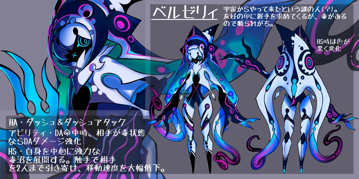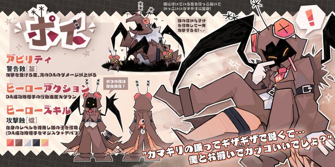 #コンパスヒーローデザインコンテスト4 #コンパス 明日はいよいよ投票の日になります!ノミネート後、ベルゼリィが多くの人に見て頂けたのが嬉しかったので追加の資料とイラストを描きました。 こういう人外が動いてる所が見たい!是非投票をよろしくお願いします!