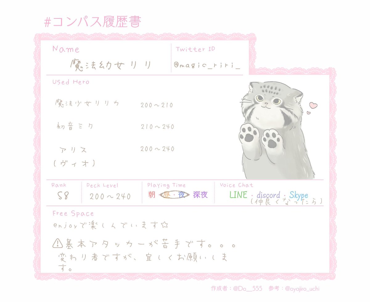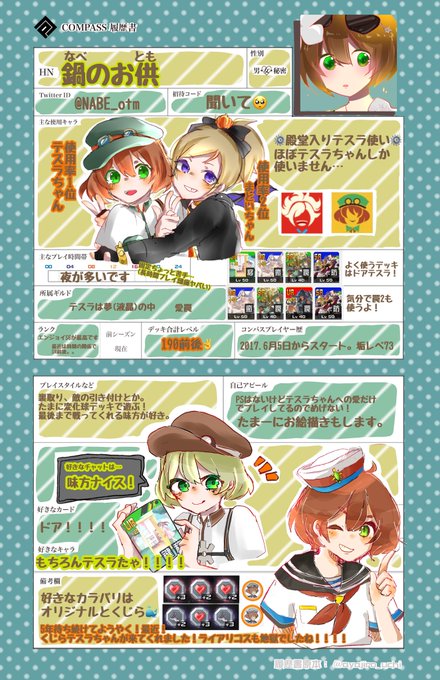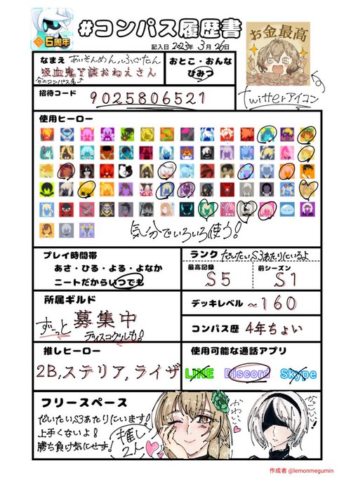 おはよう!こんにちは!こんばんは! 素敵な素敵な履歴書書いてもらったので更新します!!!(@Qapq_1 ) 万年友達0人です!! 固定仲間常に募集してます!! FFの方たちが大好きです!!! #コンパス履歴書 #コンパスお絵描き #コンパス好きと繋がりたい #いいねかRTで気になった人お迎え
