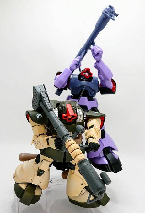 #コンペ色んなジオン機で楽しもう #写真加工希望をお願いします デザート系のザク2機で参戦します‼️ #ガンプラ #ガンプラの画像を貼るとRTされると聞いて #ガンプラ好きと繋がりたい #gundam ・ザク・デザートタイプ(ダブルアンテナ仕様) ・ザク・ハーフキャノン