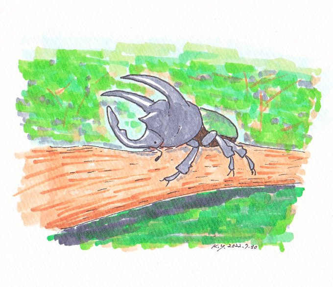20220730-1 コーカサスオオカブト Caucasus beetle instagram.com/0817yr #一日一絵 #イラスト #手描きイラスト #illustration #コピック #copic #毎日投稿 #コーカサスオオカブト #コーカサス #カブトムシ #昆虫 #甲虫 #Caucasusbeetle #insect #beetle