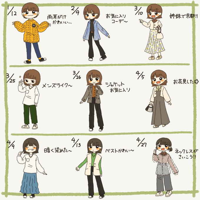 ♡インスタで投稿しているコーデイラストです #イラスト #illust #ファッションイラスト #コーデイラスト #ゆるいイラスト #絵柄が好みって人にフォローされたい #絵描きさんフォロバ100