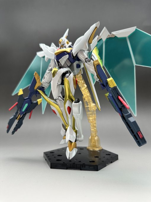 HGランスロットアルビオン 完成しました。 肩、下腕、下腿の合わせ目処理だけで他はキットのまま劇中のカラーリング目掛けて塗装しました。 田中さんの所へ送る前にうちで撮影したものをリプに載せます。 #コードギアス #反逆のルルーシュ twitter.com/hobbyseidai/st…