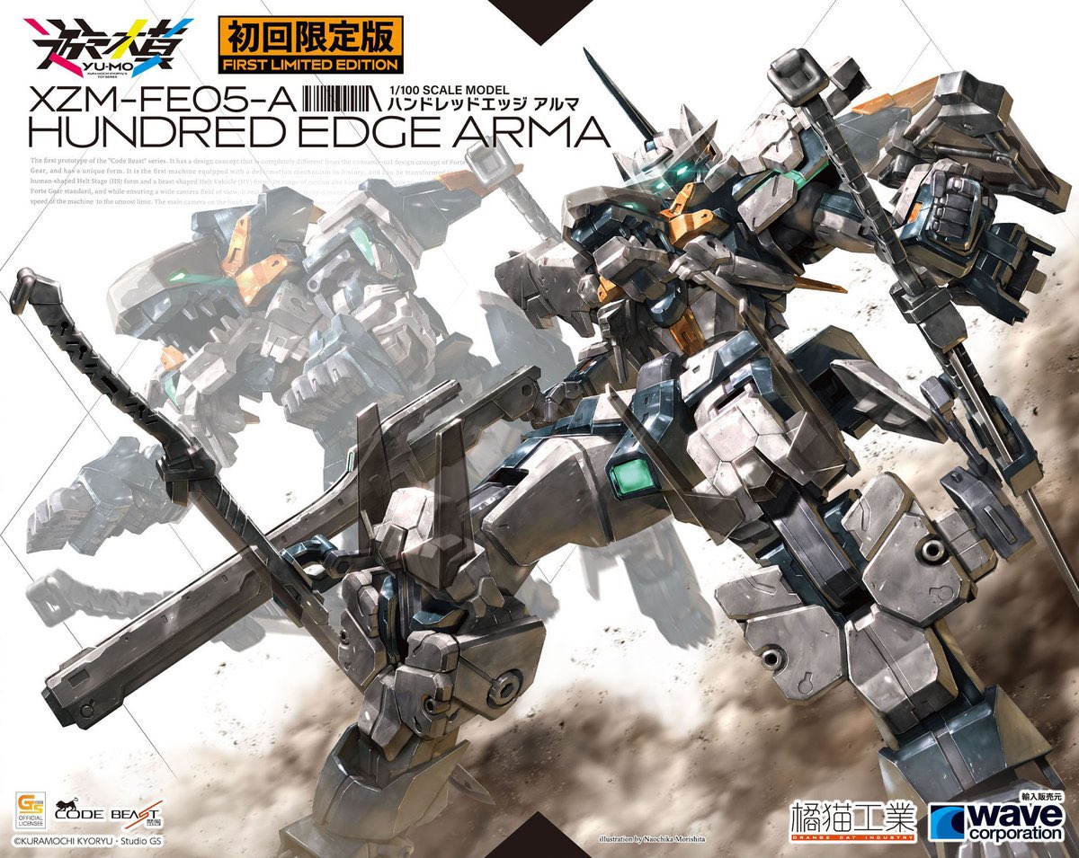 皆様ワンフェスお疲れ様です。 私がデザインさせて頂いた、コードビーストシリーズ新商品「ハンドレッドエッジアルマ」が2/8より予約開始となります。 本体同梱セットとパーツセットの2通りの展開となり、初回限定版には無色クリアランナーが付属そうです #コードビースト #ワンフェス2022W