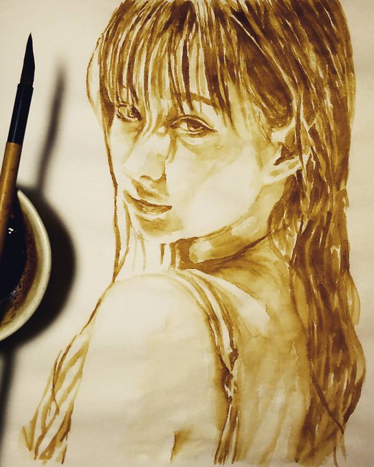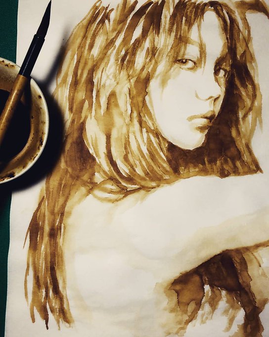 ハーフモデルさん🇺🇸🇯🇵 インスタントコーヒーでお絵描き #イラスト #スケッチ #コーヒー #illustration #sketch #coffee #コーヒータイム #coffeetime