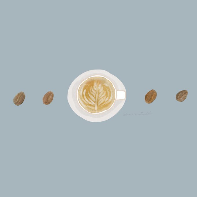 カフェラテとコーヒー豆 まだ肌寒いときがあるので、あたたかいコーヒー飲んで、リラックスして、それぞれのペースで頑張っていきましょう(*´꒳`*)♪ #イラスト #コーヒー #イラスト好きな人と繋がりたい #コーヒー好きな人と繋がりたい