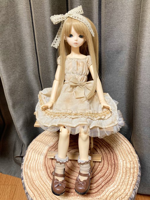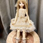 おはドルございます🌞 どんぐりさん🌰に買った純白のワンピースを一昨日の晩からコーヒー染めにしておりました〜ので着せてみた! アンティークっぽくてなかなか良い仕上がりなのでは(゚ω゚)と自画自賛。いかがでしょう?? #おはドル #TinyFairy #bluefairy #コーヒー染め #染め物