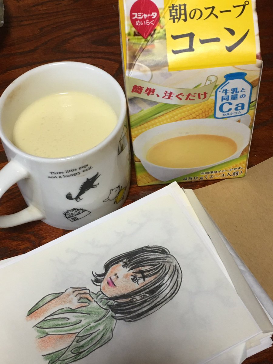 1980年の登場以来、コーン粒入り缶スープの「コーン残っちゃう問題」はまだ解決していないらしい。缶底に残ったコーンといまだデザイン業界にいる自分が重なる。皆んなどこ行った? #ネコキャット #猫と仕事と寒い朝と #コーンスープ #フリーランス #グラフィックデザイン #イラスト #illustration