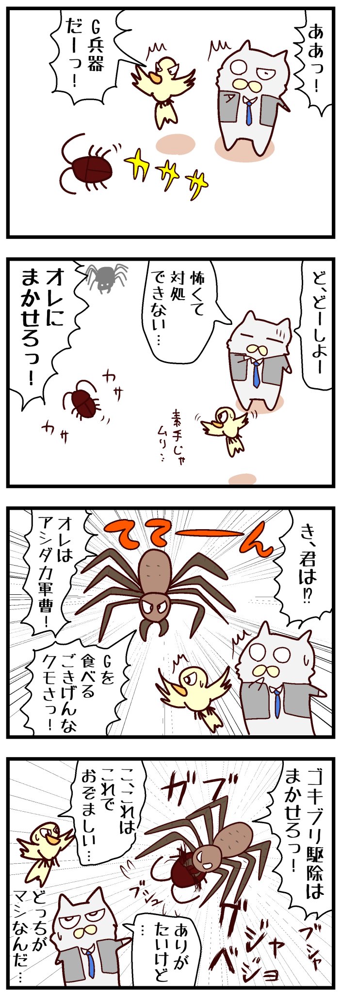 @chiplizard1 作 4コマ漫画 【カエルのギョーレツ】 twitterにて1日1話公開中! 第11回は 『ゴキブリの話』です。 何卒よろしくお願いいたします。 #漫画が読めるハッシュタグ #4コママンガ #4コマ漫画 #カエルのギョーレツ #害虫 #ゴキブリ #木片トカゲ #宣伝