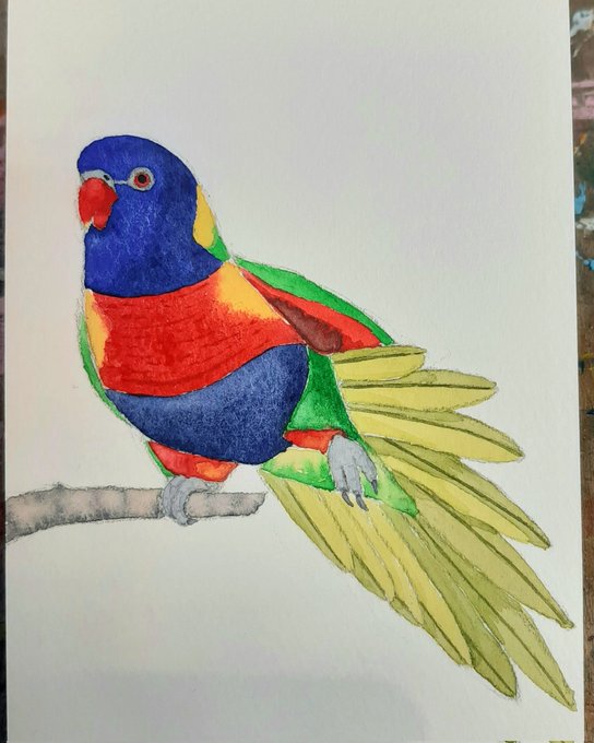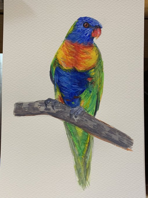 うたた寝してましたが『ママ見て!』と叩き起こされ、メガネまで届けてくれた息子(笑) 完成したみたいですよ⭐ #ゴシキセイガイインコ #絵画コンクール #自画自賛 #小学6年生 #色鉛筆画 #色鉛筆 #将来の夢は画家になること twitter.com/san73732943/…