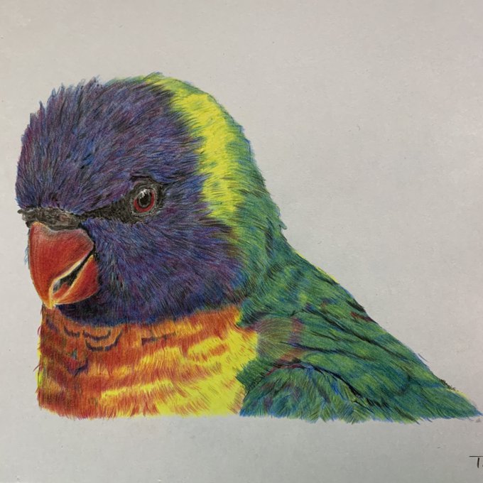 嵯峨山 @sgym_phtさんの #ゴシキセイガイインコ の写真に魅了されて、 #小学6年生 の息子が絵を描きたいモード、スイッチオン🎨 『ああ!絵が楽しい♬この子かわいいんだよぉ〜❣』とルンルンで #色鉛筆画 に燃えています🔥 毎度ながら #やる気スイッチ 探すのも一苦労だなぁ😂(笑) twitter.com/sgym_pht/sta…