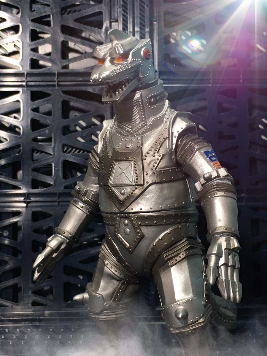 #夜のフィギュア撮影会 お題『怪物』 鋼鉄の怪物!メカゴジラ!←ゴジラストア限定メカゴジラ1975ダメージカラーVer. (手首改造) #メカゴジラ #メカゴジラ1975 #ムービーモンスターシリーズ #ムビモン #ソフビ #ゴジラストア #ゴジラ #Godzilla #メカゴジラの逆襲