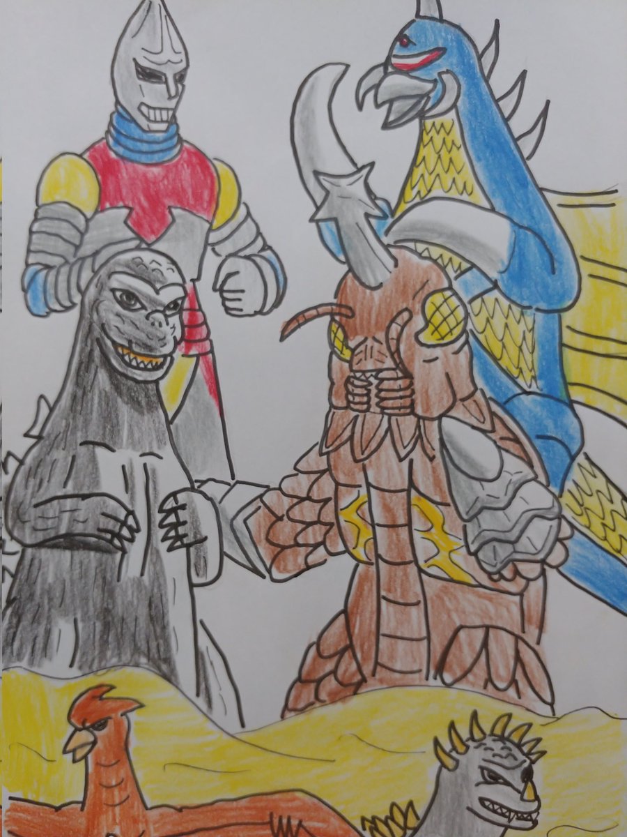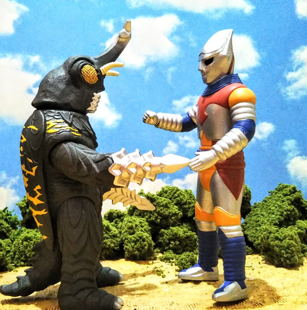 #夜のフィギュア撮影会 お題『悪党』 50周年!今年注目の悪党コンビ!メガロとガイガン! #メガロ #ガイガン #ソフビ #ムービーモンスターシリーズ #YMSF #ゴジラ対メガロ #ゴジラ対メガロ50周年 #ジェットジャガー #Godzilla #オモ写