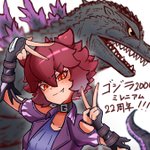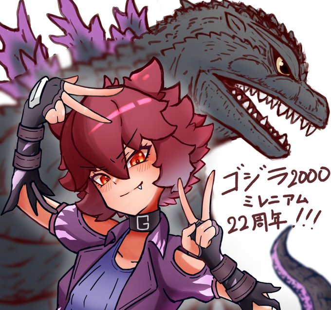 遅刻しちゃいましたが、ゴジラ2000ミレニアム公開22周年おめでとうございます! 今でも一番大好きなゴジラです!(イラストの女の子はミレゴジの擬人化ちゃんです) #怪獣擬人化 #ゴジラ #ゴジラ2000ミレニアム