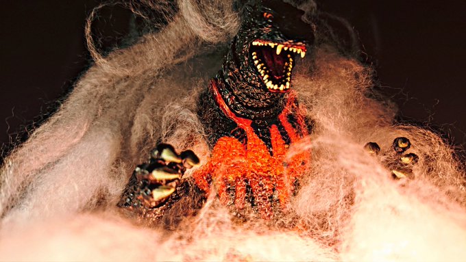 #夜のフィギュア撮影会 テーマ「変化」7/18 〜完全生命体デストロイア〜 古代地層の微小生物がオキシジェンデストロイヤーにより変異した怪獣。炎より出で立ち悪魔の如く変化した姿は完全体と称されるが、実際には、これすらもデストロイアの最終進化である保証すらない。 #ゴジラVSデストロイア
