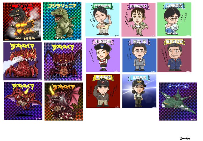 #ゴジラ #ゴジラビックリマン #ゴジラVSデストロイア 「ゴジラVSデストロイア」をビックリマン風に描いてみた。 黒木特佐 「これで我々の来年度の予算はゼロだな……来年度があればだ…」