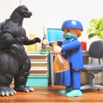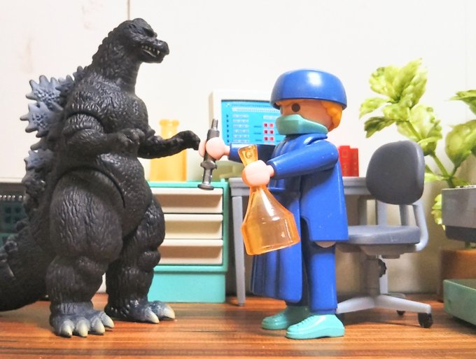 #夜のフィギュア撮影会 お題「防」(既出) 医者 「何?予防接種を打ちたい? しかしなぁ、 薬は注射より飲むのに限るぜ、 ゴジラさん!」 #ゴジラVSビオランテ #権藤吾郎一佐 #Godzilla