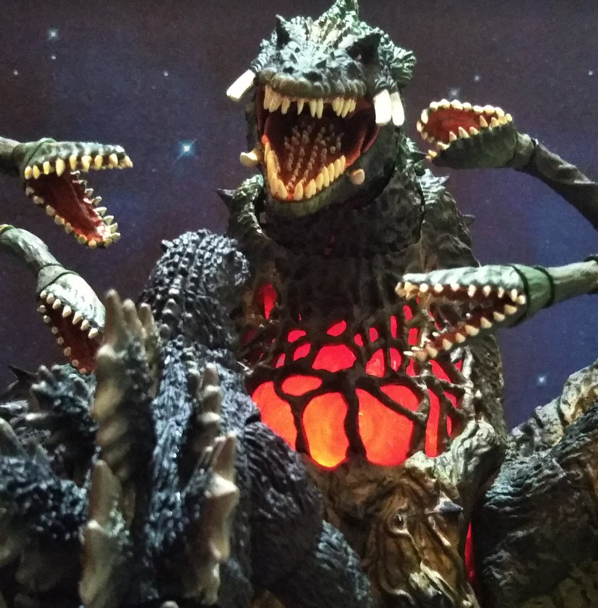 ビオランテが進化している・・・ 先日のZO MODELSさんのゴジラ1989の造型の福田浩史氏(@KUDAFU_ROMI )がこちらも原型を作ったビオランテです。2020年のワンフェスにて販売されていました。展示の塗装見本を写真に撮りデジラマ化した画像です。 #デジラマ #ゴジラvsビオランテ #godzilla
