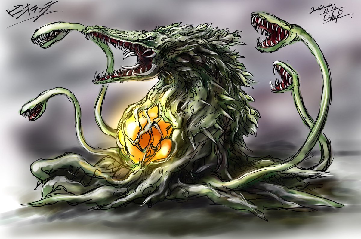 #ゴジラ #ゴジラVSビオランテ バイオ怪獣 ビオランテ(植獣形態)を描きました! 生きたバラがG細胞の影響をさらに強くして進化した姿 この見た目でゴジラを上回る巨体、そして移動することも可能になりまさに山が生きて動いてるかのような迫力... ゴジラのなかでもかなり好きな怪獣です